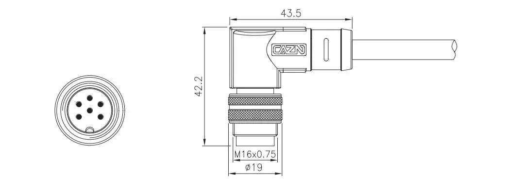 Plugue sobremoldado macho angular M16-6Pins-xxM-PVC | M16-P6-MWD-xxPV-S | M16-P6-MWD-xxPV | 6 |